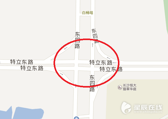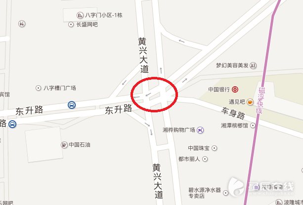 (黃興大道東升路路口(紅色標識路口) 圖片均為百度地圖截圖)
